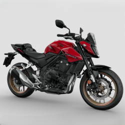 Pack showroom-style rouge, pack accessoire officiel Honda pour CB500 Hornet à partir de 2026.